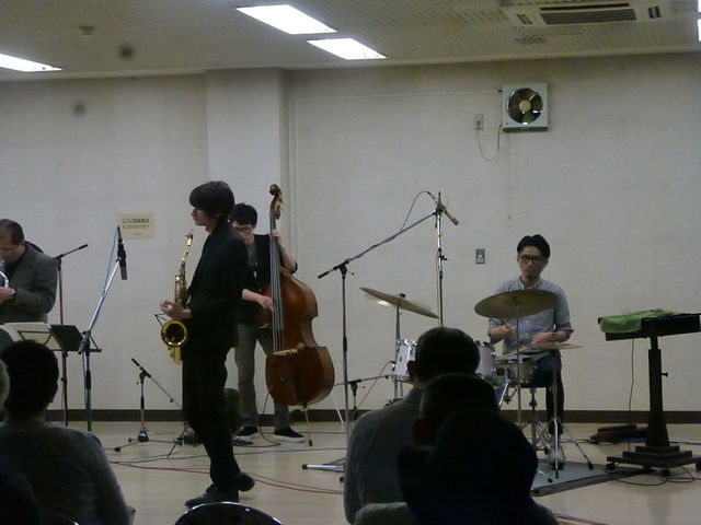カルテットで一時間の2ステージ、トランペットが良い音してました、一応音楽室?天井も音響材が貼ってある?見たいですがドラムの音が相当こもってましたね